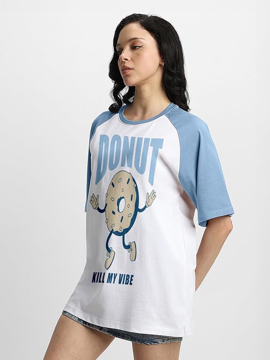 JOVABELLE® 100% Cotton Oversized Drop Shoulder Graphic Raglan Boyfriend T-Shirt for Women S-2XL