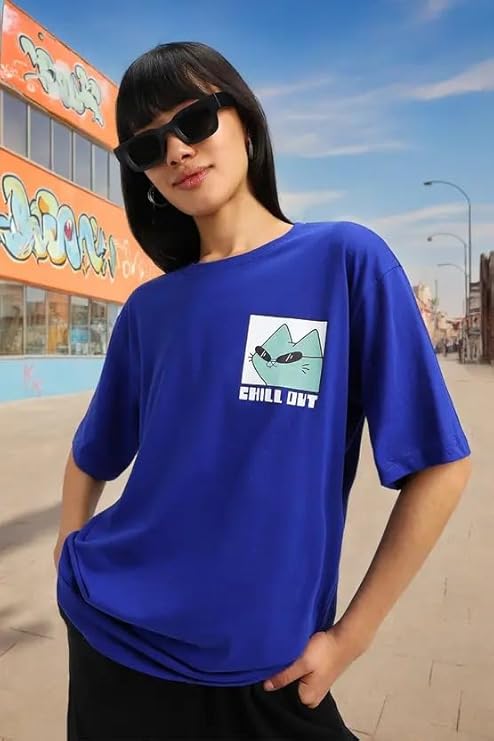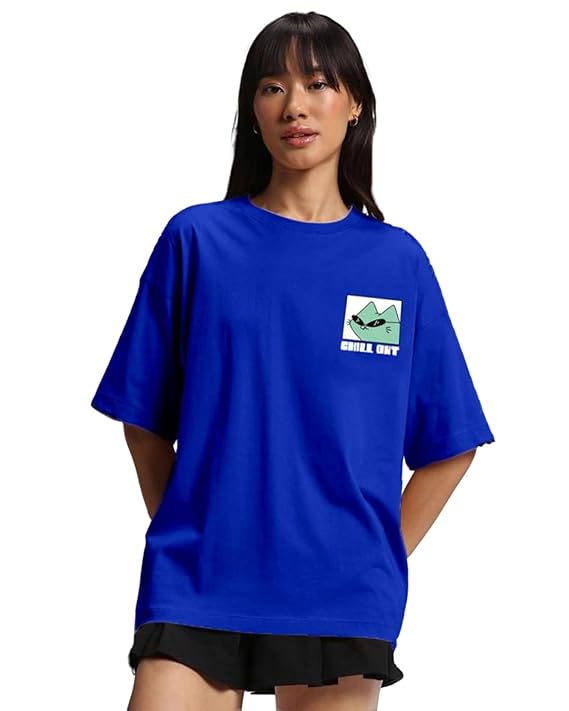 This oversize, loose baggy fit T-shirt combines comfort with style, featuring a trendy drop shoulder silhouette and multicolor half sleeves. Designed with a distinctive pocket print, it adds a fashionable edge suitable for women and girls seeking a relaxed yet chic look. The breathable fabric and roomy cut ensure all-day ease, making it ideal for casual outings or weekend wear.